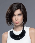 Model Adore to peruka z włosów mieszanych (włosy naturalne remy + włosy syntetyczne o podwyższonej odporności na ciepło) utkanych na bazie, którą charakteryzuje wykonanie maszynowe na tresach, mikroskóra na linii przedziałka oraz linia rozmyta z przodu.