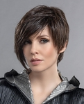 Model Amaze to peruka z włosów mieszanych (włosy naturalne remy + włosy syntetyczne o podwyższonej odporności na ciepło) utkanych na bazie, którą charakteryzuje wykonanie maszynowe na tresach, mikroskóra na górnej części głowy oraz linia rozmyta z przodu.