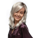 Modelka ma na sobie perukę w kolorze numer 16/101/8R.