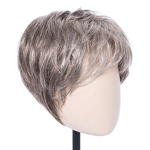 Kupujesz półperukę w kolorze podanym w tytule i znajdującym się w kwadracie w lewym górnym rogu. Zdjęcie na stojaku oraz modelka prezentują kolor salt/pepper/mix.