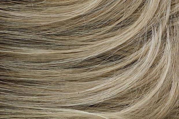 Modelka ma na sobie perukę w kolorze numer 101/24/38R.