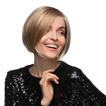 Modelka w ciemnej bluzce prezentuje perukę w kolorze 18/22/12