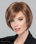 Model East Luxury to peruka z włosów syntetycznych o podwyższonej odporności na ciepło utkanych na bazie, którą charakteryzuje wykonanie ręczne na tiulu, mikroskóra na górnej części głowy oraz linia rozmyta z przodu.