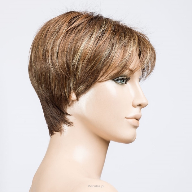 Peruka syntetyczna termoodporna krótka fryzura typu pixie ciepły tytoniowy brąz z odrostem ELAN tobacco/rooted
