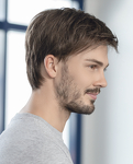 Peruka męska George 5 Stars to model z włosów syntetycznych utkanych na bazie, którą charakteryzuje wykonanie ręczne na tiulu oraz linia rozmyta z przodu.
