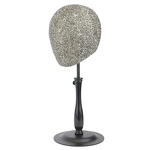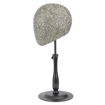 Powierzchnia głowy pokryta jest ozdobnymi kryształkami pięknie odbijającymi światło, których chropowata faktura sprawi, że peruka pozostanie na swoim miejscu bez ryzyka zsunięcia się i zabrudzenia włosów oraz bazy. Takie wykończenie nadaje całości interesujący wygląd w stylu glamour - stojak do peruki sam w sobie będzie estetycznym elementem wystroju.