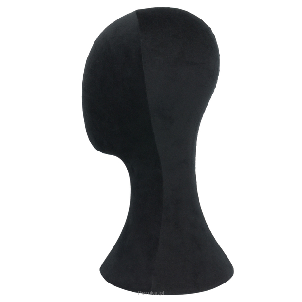 Welurowa powierzchnia jest przyjemna w dotyku. Nie tylko dobrze prezentuje się po postawieniu na półce. Zapobiegnie także przesuwaniu się peruki i przypadkowemu spadnięciu uzupełnienia z główki oraz zabrudzeniu włosów i bazy.