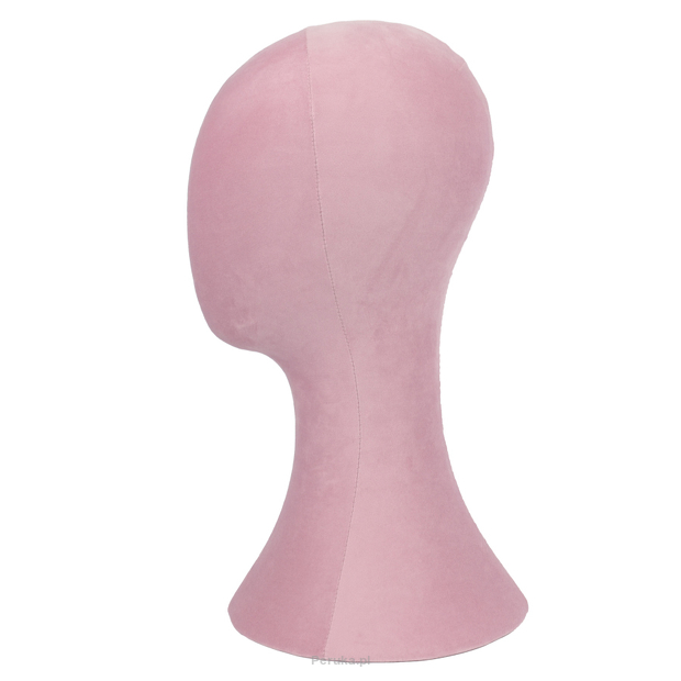 Welurowa powierzchnia jest przyjemna w dotyku. Nie tylko dobrze prezentuje się po postawieniu na półce. Zapobiegnie także przesuwaniu się peruki i przypadkowemu spadnięciu uzupełnienia z główki oraz zabrudzeniu włosów i bazy.