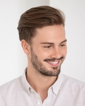 Jet jest wykonany z włosa syntetycznego o podwyższonej odporności na ciepło. Fryzurę można modelować używając temperatury do 130°C. Baza to delikatna siateczka, która po założeniu stabilnie trzyma się na głowie. Ten męski tupet pozwala osiągnąć całkowicie naturalny efekt - wrażenie jest takie, jakby włosy wyrastały z prawdziwej skóry głowy.