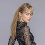 Modelka ma na głowie topper w kolorze sandyblonde rooted.