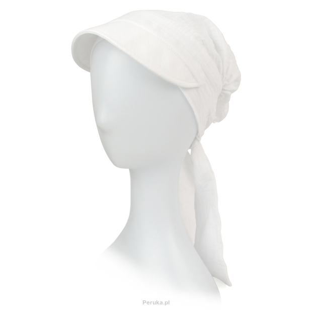 Lekki muślinowy turban z daszkiem biały CARINI 428