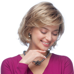 Model Margaret to peruka z włosów syntetycznych umieszczonych na bazie, którą charakteryzuje wykonanie maszynowe na tresach, mikroskóra na czubku głowy oraz linia rozmyta z przodu. Specjalne włókno syntetyczne doskonale imituje prawdziwe włosy, rosnące na głowie.