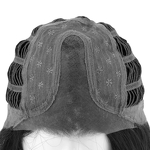 Model Modest to peruka z włosów syntetycznych o podwyższonej odporności na ciepło utkanych na bazie, którą charakteryzuje wykonanie maszynowe na tresach, mikroskóra na linii przedziałka na środku głowy oraz linia rozmyta z przodu. Specjalne włókno syntetyczne doskonale imituje prawdziwe włosy.