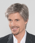 Peruka męska Roger to model z włosów syntetycznych utkanych na bazie, którą charakteryzuje wykonanie ręczne na tiulu, mikroskóra na górnej części głowy oraz linia rozmyta z przodu. Specjalne włókno syntetyczne doskonale imituje prawdziwe włosy.