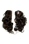 Treska złożona z dwóch pasm, wykonana z kręconego włosa syntetycznego. Obie części mocowane są na klamrę do włosów rosnących na głowie.