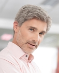 Peruka męska Steven Sport to model z włosów syntetycznych utkanych na bazie, którą charakteryzuje wykonanie maszynowe na tresach, mikroskóra na górnej części głowy oraz linia rozmyta z przodu. Specjalne włókno syntetyczne doskonale imituje prawdziwe włosy.