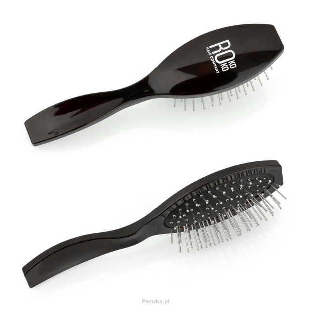Perukarska szczotka do włosów wykonana z trwałego i mocnego tworzywa w eleganckim czarnym kolorze. Produkt jest przeznaczony do używania z perukami z włosów naturalnych oraz syntetycznych.