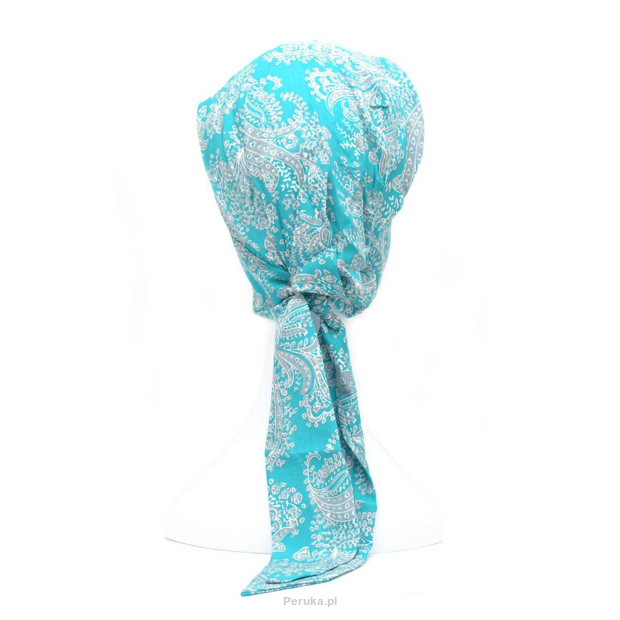 Przewiewny elegancki turban z długimi szarfami 100% bawełna jasny niebieski wzory AMSTERDAM 28*