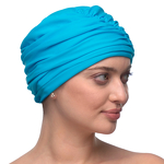Problemy zdrowotne lub okres powrotu do zdrowia nie zawsze muszą oznaczać ograniczenia aktywności. Turban Aqua to model przygotowany z myślą o wizytach na pływalni, kąpielach w morzu lub jeziorze. Doskonale sprawdzi się jako obowiązkowy czepek na krytym basenie lub ochrona głowy w słoneczne dni pomiędzy kolejnymi wejściami do wody.