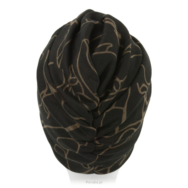Lekki, ciepły turban z podszewką. Nawiązanie do stylu retro w tym modelu osiągnięto poprzez zebranie tkaniny w kształt odwróconego V nad czołem.