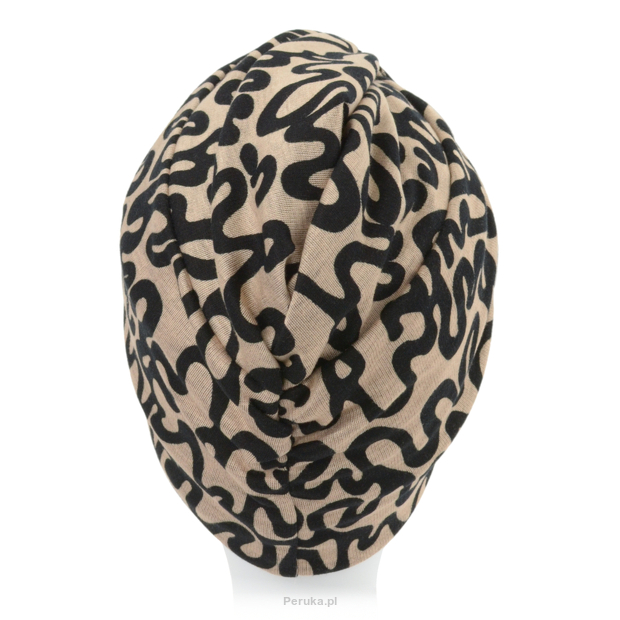 Turban nawiązujący do stylu retro beżowy w czarne zygzaki ARUBA MJ058+B21