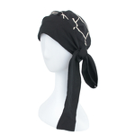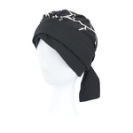 Turban czarny wzorzysty z długimi troczkami 100% wiskoza ASTER T-389