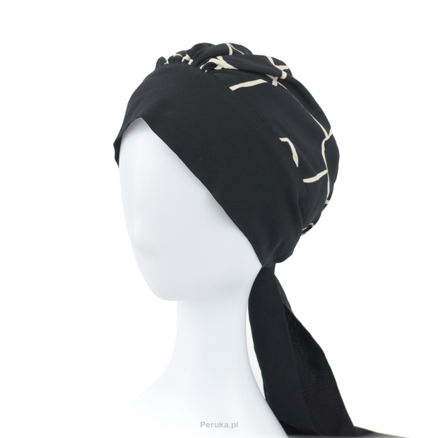 Turban do użytku codziennego, lekki i z długimi troczkami. Nie przylega mocno do głowy i można go stylizować na wiele sposobów.