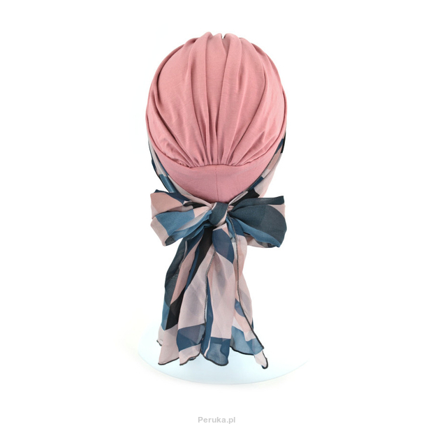 Turban z długą ozdobną szarfą różowy BEATA sz-10+BM013