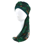 Turban z długą, ozdobną szarfą w bardzo ładne wzory. Kolorowa szarfa daje dużo możliwości stylizacji. Dostępny w wielu wersjach kolorystycznych.