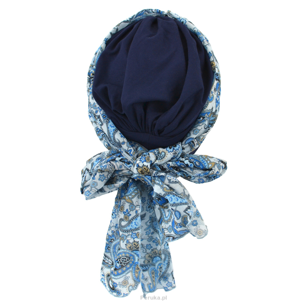 Turban z długą ozdobną szarfą granatowy BEATA sz-12+BM20