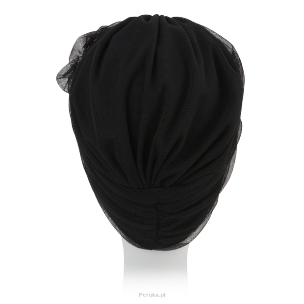 Bella to ciekawy turban, który nawiązuje swoją formą do stylu retro. Czepek jest z zewnątrz pokryty zwiewną siateczką, która dodaje wizualnej objętości nakryciu. W przedniej części turbanu znajduje się ozdobny materiałowy kwiat.