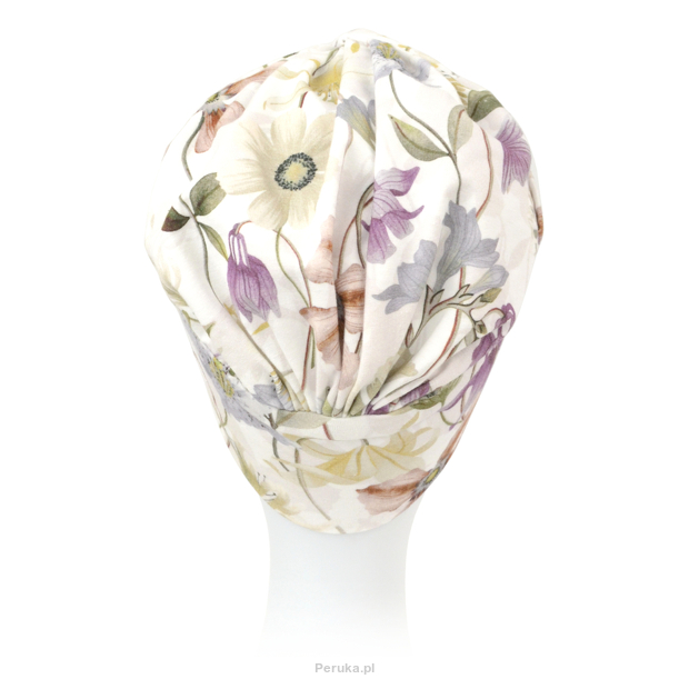 Ładny i wygodny turban kremowy z kwiatowym wzorem ELA Q-405