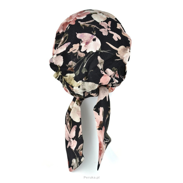 Prosty do ułożenia lekki i wygodny turban czarny kwiatowy wzór FELICJA NEW 344