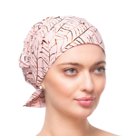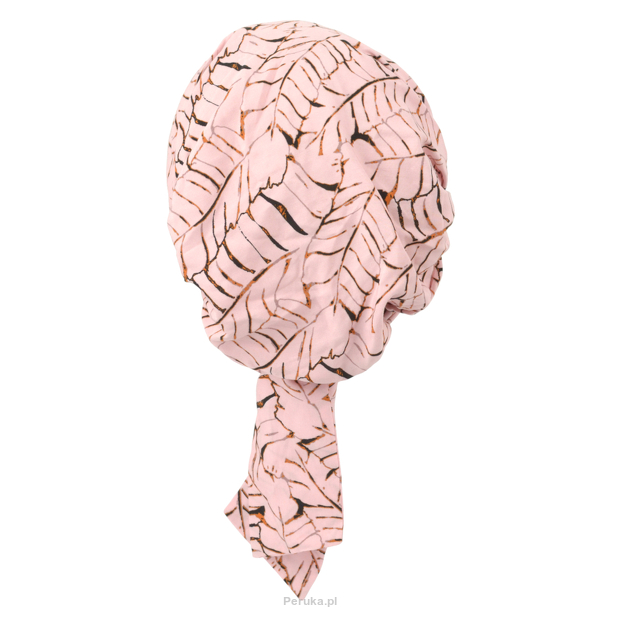Prosty do ułożenia lekki i wygodny turban jasnoróżowy z motywem liści FELICJA NEW K-399