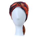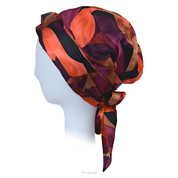 Czepek ma doszyte dwie taśmy z takim samym wzorem, które optycznie powiększają turban po zawiązaniu.