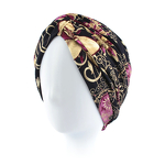 Ciepły turban z węzłem z przodu czarny w kwiaty GEM