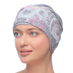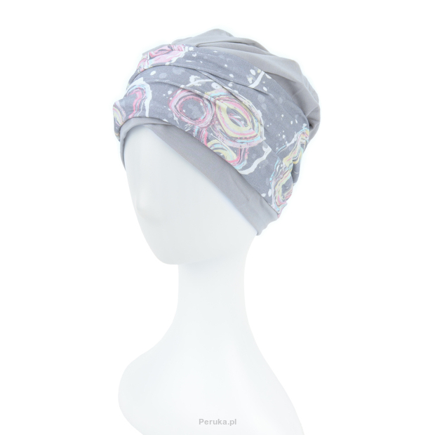 Klasyczny turban przeznaczony do codziennego noszenia. Lekki i przewiewny materiał sprawia, że skóra głowy może swobodnie oddychać nawet w trakcie bardzo ciepłych dni. Wzorzysta szarfa upięta z tyłu nadaje kształt i dodaje charakteru stylizacji.