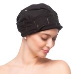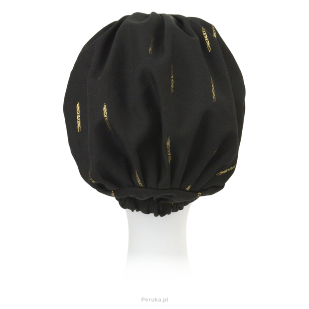 Marszczony turban czarny ze złotym nadrukiem JAVA F064B+B21