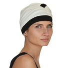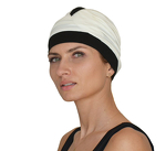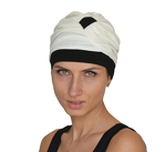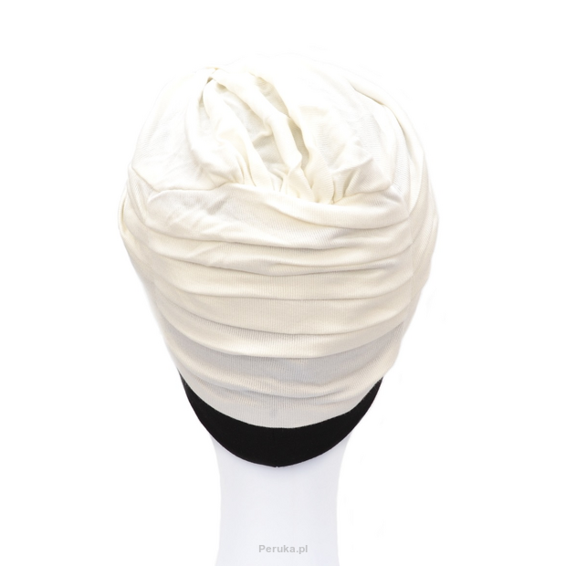 Turban z ozdobnym drapowaniem kremowy z czarnym paskiem KLARA BC Premium*