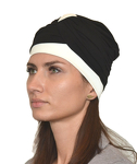 Turban z ozdobnym drapowaniem czarny z białym paskiem KLARA CB Premium*