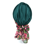 Turban z dwoma szarfami w zestawie klasyczny wzór butelkowa zieleń LAURA BM13