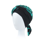 Turban dwustronny czarny z turkusowym wzorem LEAH BM05/2233b