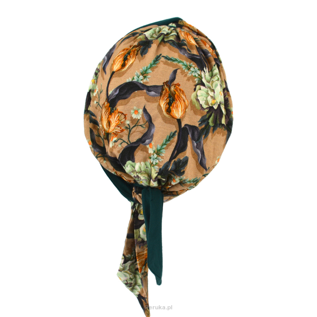 Turban dwustronny beżowy kwiatowy LEAH BM13/BM387