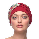 Turban dwustronny kremowo czerwony wzory LEAH BM214/BM386