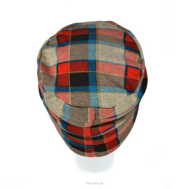 Dwuwarstwowy turban z ozdobnym drapowaniem kolorowy w kratkę LONDON J/74*