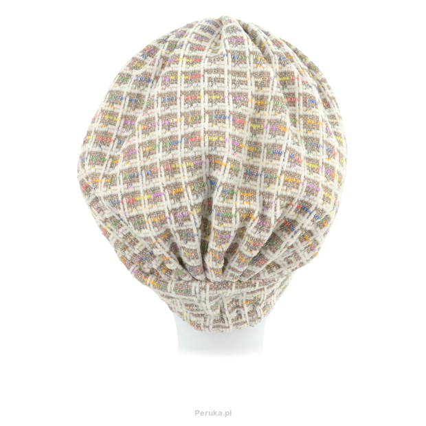 Turban jesień zima tweedowy beżowy z multi-kolorowymi przeszyciami MADAME