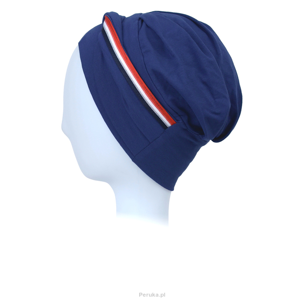 Turban granatowy z trójkolorową lamówką MILAN B23+A14
