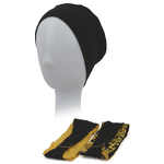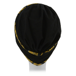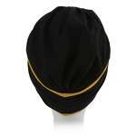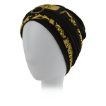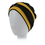 Czepek jest przewiewny i doskonale sprawdzi się w roli samodzielnego nakrycia głowy. Można go uzupełnić o jedną z dwóch opasek, aby nadać unikalnego charakteru swojej stylizacji. Dzięki temu turban będzie pasować do wielu okazji. Jedna opaska to stonowane zestawienie kolorów, natomiast wykończenie drugiej to abstrakcyjne wzory, które kontrastują z gładką czapeczką.