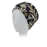 Lekki i przewiewny turban czarny z beżowym wzorem PEONY K-394