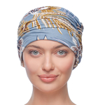 Jasnoniebieski turban z kwiatowym wzorem PEONY Q-380*
